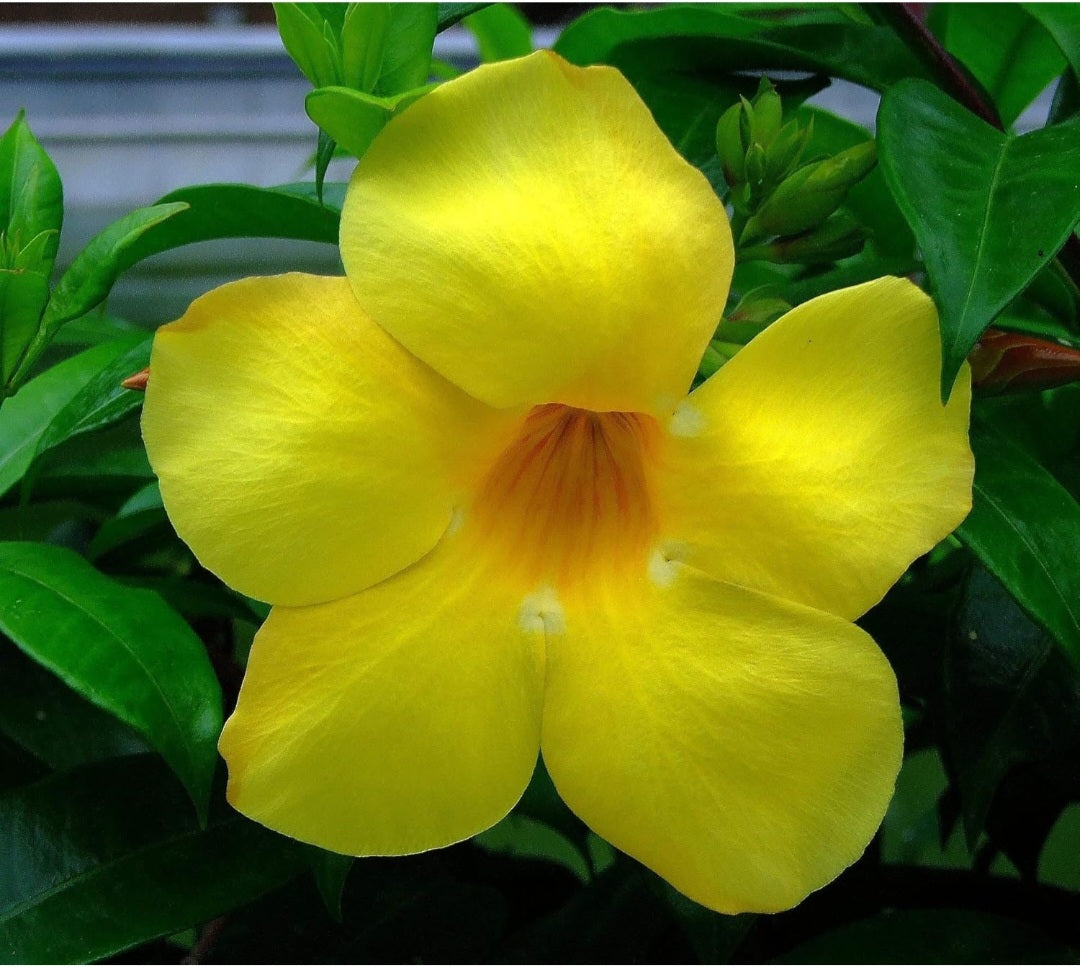 Yellow Allamanda, a radiant flowering shrub, dazzles with its golden-yellow blooms. Resilient and sun-loving, it adds a burst of tropical sunshine to gardens. Flourishing in warm climates, this allamanda variety enhances landscapes with its vibrant and cheerful yellow blossoms.